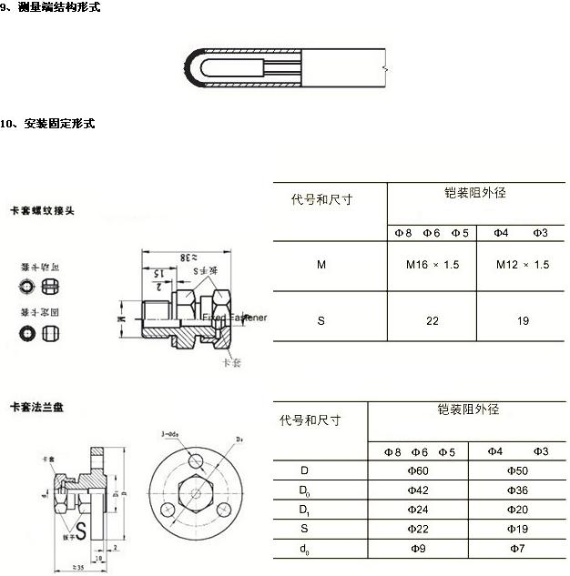 產(chǎn)品型號(hào)溫度范圍℃精度等級(jí)安裝固定裝置WZPK-123Pt100-200-+500A級(jí)或b級(jí)無(wú)固定裝置wzpk-124 wzpk-126 wzpk-128 wzpk2- 125 wzpk2- 126 wzpk-223固定卡入螺釘wzpk-224 wzpk-225 wzpk 28 wzpk2- 224 wzpk2- 225 wzpk2- 226 wzpk2- 228 wzpk-323可動(dòng)鎖緊螺釘wzpk-324 wzpk-326 wzpk-328 wzpk2- 325 wzpk2- 326 wzpk2- 328 wzpk-423固定鎖緊凸緣wz PK PK-428 wzpk2- 424 wzpk2- 425 wzpk2- 426 wzpk-428 wzpk-523可動(dòng)咬合凸緣wzpk-524 wzpk-525 wz PK-526 wzpk-528 wzpk2- 524 wzpk2- 525 wz PK2- 526 wzpk2- 526