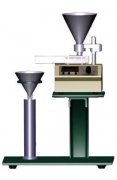 在無振動條件下測量粉體體積密度的裝置。 裝置由送料器、漏斗、漏斗、量筒構成。 調整漏斗架,使漏斗下端與量筒上端的距離為10mm,漏斗的中心與量筒的中心重合。 進料器以20g/m...